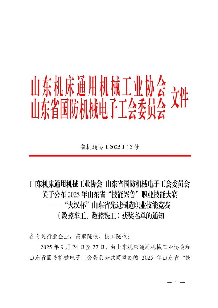山东省先进制造职业技能竞赛(数控车工、数控铣工)获奖通知.p···…
